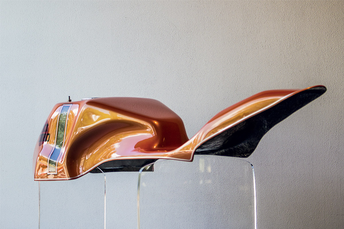 Serbatoio inglobato nella stessa scocca. Finestrelle trasparenti per il livello Carburante in ambo i lati.